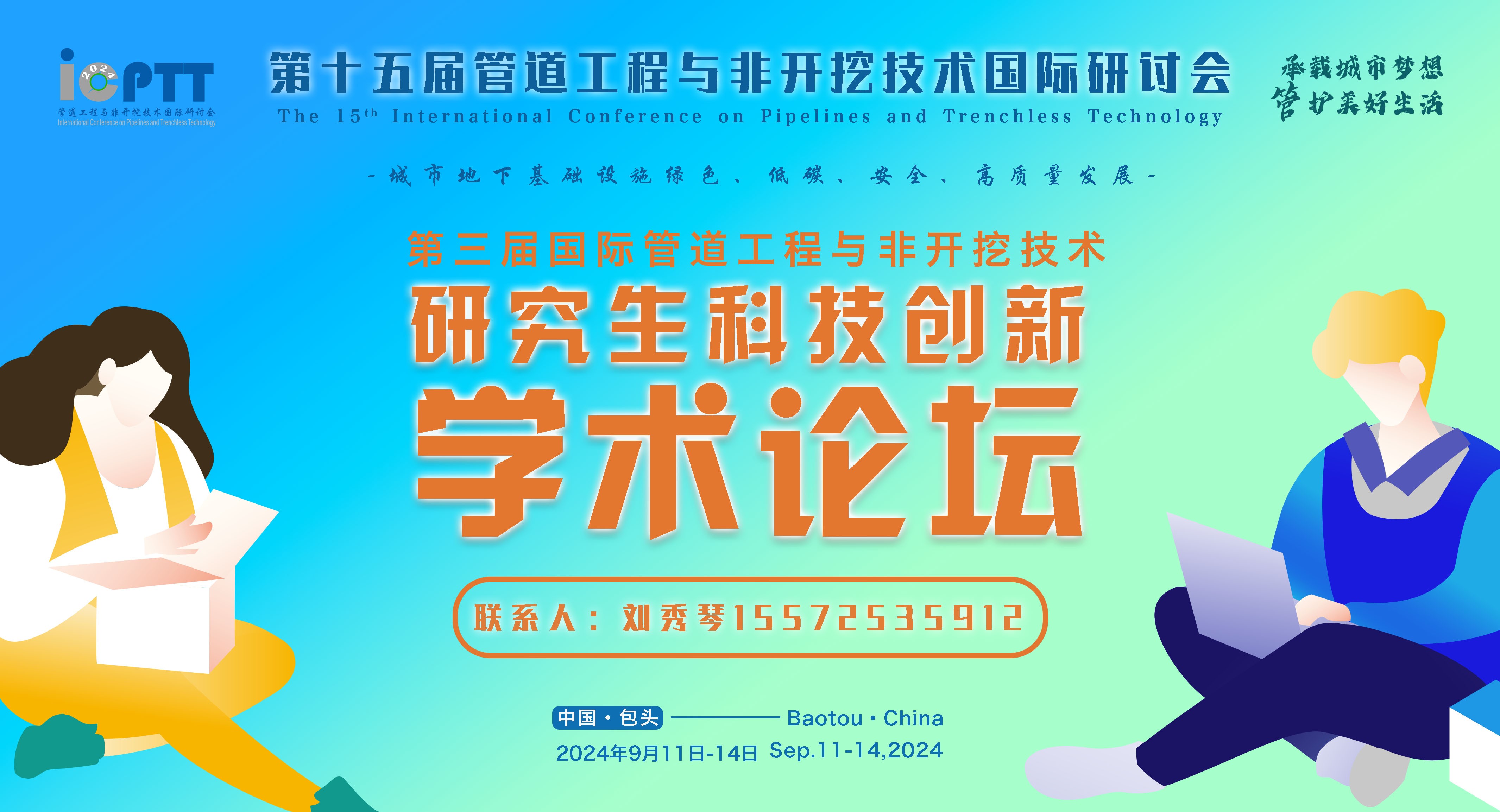 ?關于舉辦第三屆國際管道工程與非開挖技術研究生科技創新學術論壇的通知 ? ? ? ? ? 為了持續更好地推動管道工程和非開挖技術領域創新性科研成果、新技術和先進工程經驗的探討、交流和復雜問題的協同研究,促進管道與非開挖工程領域政、產、學、研、用的共同進步,快速提高管道建設水平,服務于我國城市地下管線基礎設施建設與更新改造,中山大學、內蒙古科技大學、同濟大學、鄭州大學、長江生態環保集團有限公司、壩道工程醫院等單位將于2024年9月11-14日在中國包頭市共同組織召開“第十五屆管道工程與非開挖技術國際研討會(ICPTT 2024)”。 ? ? ? 為鼓勵和促進研究生科技創新